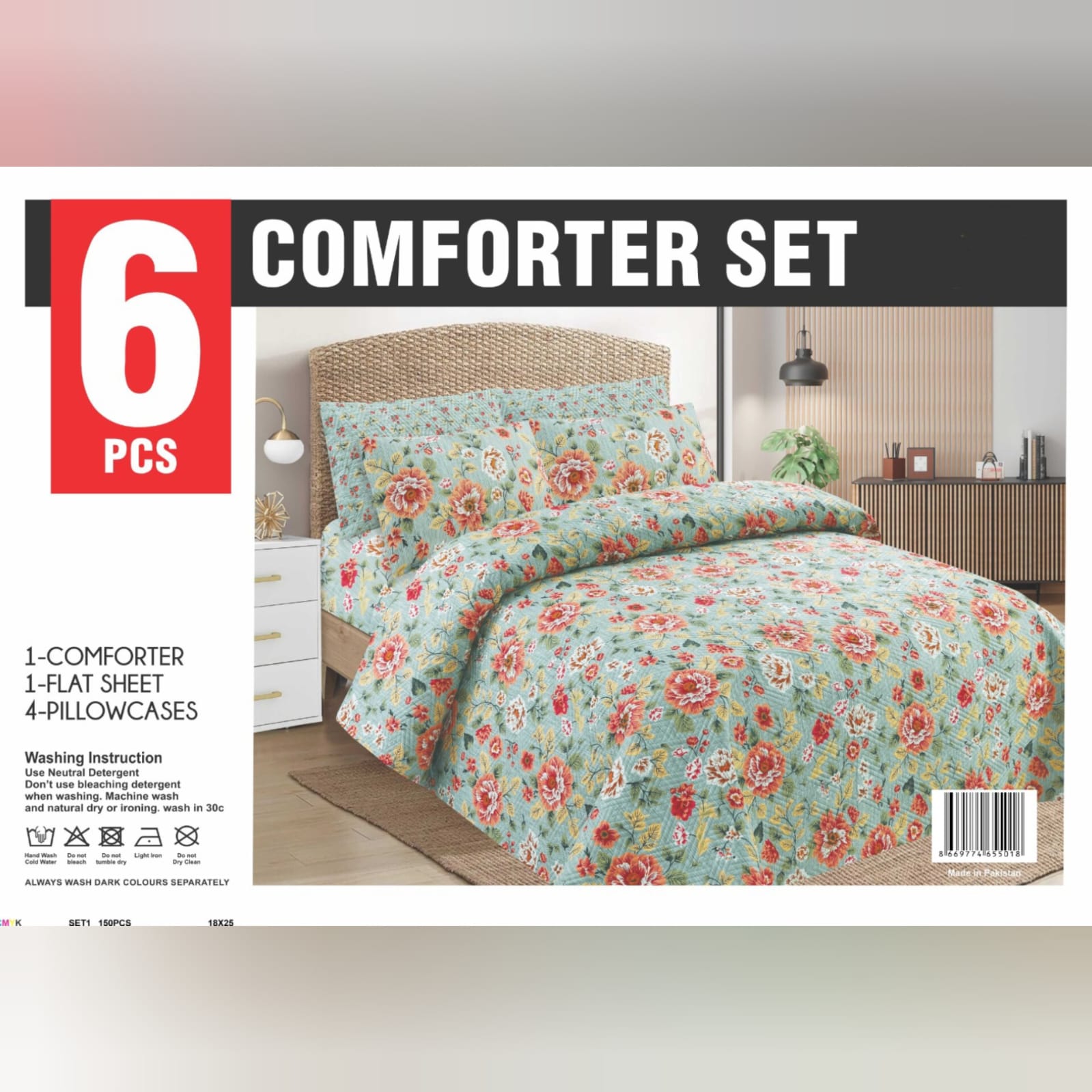 Packageincludes: 1 x King Size Bed Sheet 95 x 100 inch 1 King size filled Winter Quilt with Heavy polyester filling 95 x 100 inch 500 GSM filling. 2 x Pillow Covers Front design 19 x 29 inch 2 x Pillow Covers Reverse design 19 x 29 inch Fabric:Micro Cotton A 6-piece winter comforter set typically includes everything you need for a cozy and stylish bedding experience. Here’s what you can usually expect in such a set.